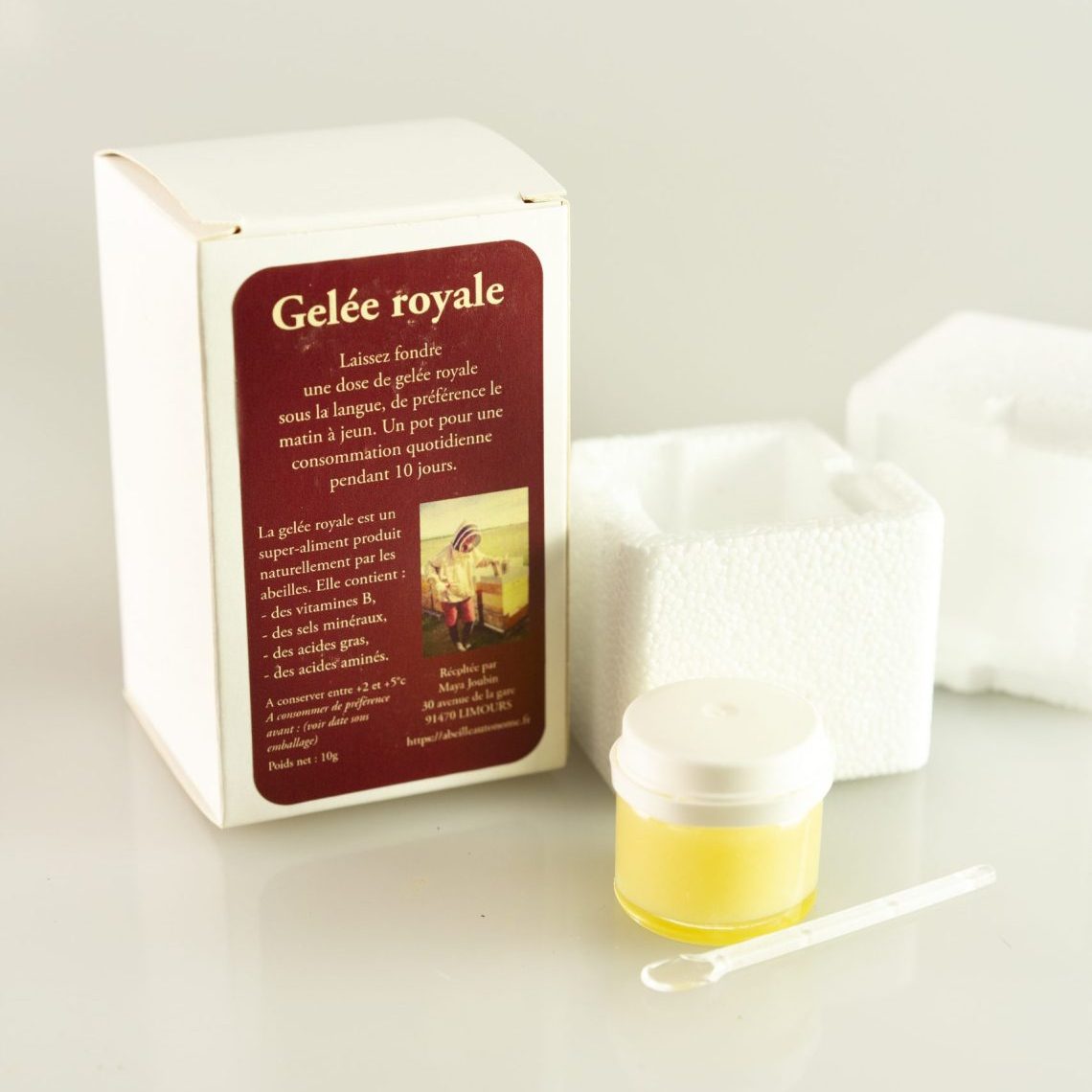 Gelée Royale issue de la production d’une collègue apicultrice de Limours (Essone). Récoltée et conditionnée avec soin, directement à la ferme.